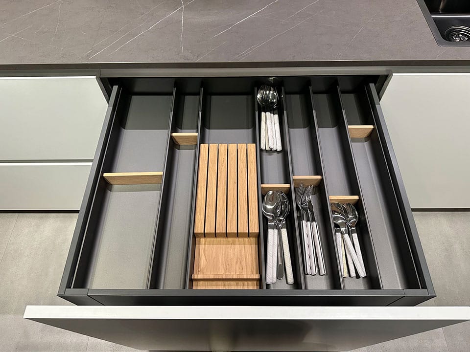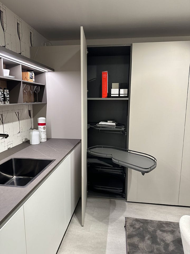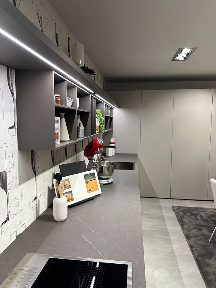 - Top laminato Pietra Tobacco Sp.2, con moduli a giorno, mensole, p/coltelli e p/tagliere